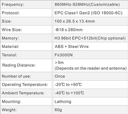 •  Adopt zinc alloy material, outsourcing high-quality ABS plastic, and equipped with ordinary aviation wire rope, strong tensile strength, high precision, anti-pry and anti-counterfeiting, higher security.The locking method is pull by hand, easy to use, and then equipped with laser barcode printing, anti-counterfeiting and anti-theft effect is better, special wire breaker to unlock the wire rope cutting.